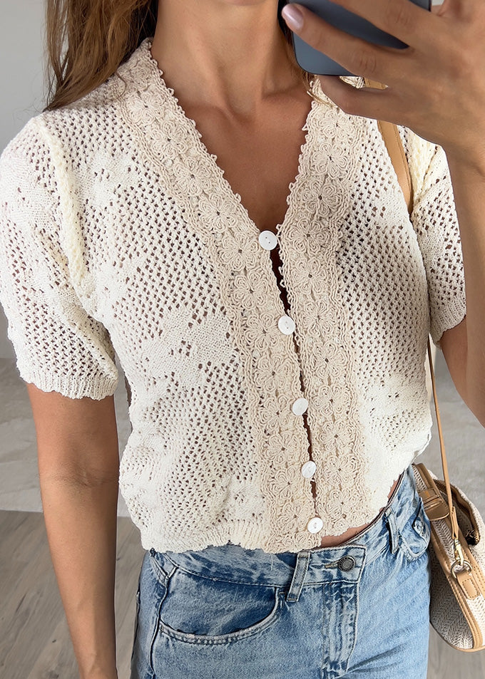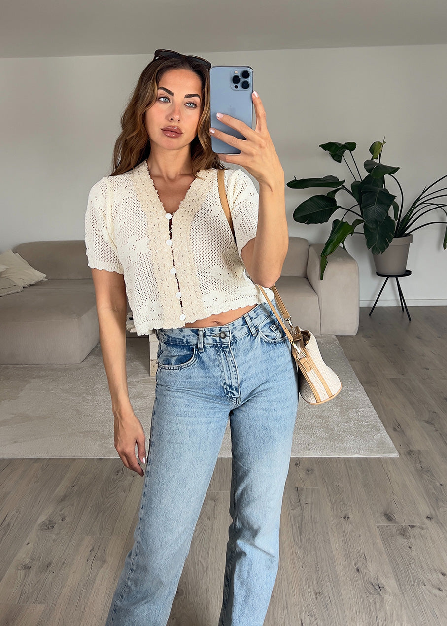 Luftige Häkel-Strickjacke mit süßer Knopfleiste.